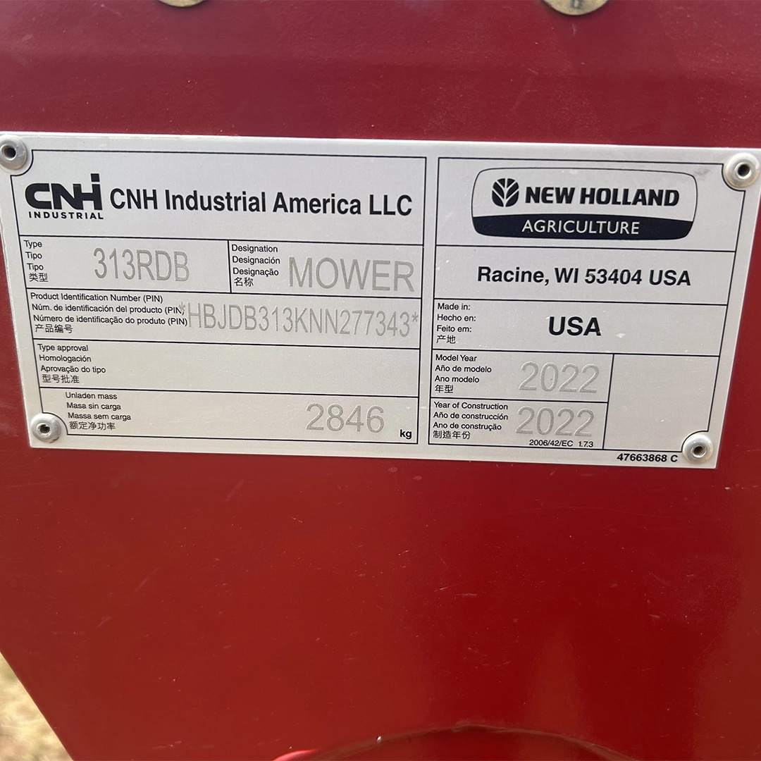 2022 New Holland 313 Rubber Roller Mower Conditioner
